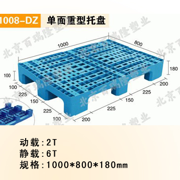 產品編號:BRL-88/1008單面重型托盤產品名稱:BRL-88/1008單面重型托盤規 格:1000*800*180mm 動載:2T 靜載:6T產品備注:產品類別:托盤/墊板→單面重型托盤