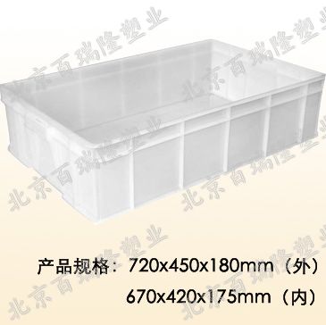 產品編號:BRL-13/1號食品箱產品名稱:BRL-13/1號食品箱規 格:720*450*180mm(外) 670*420*175mm(內)產品備注:產品類別:周轉箱/盤→食品箱